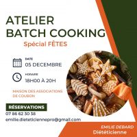 animé par Emilie DEBARD – Diététicienne Vendredi 5 décembre 2025 de 18h à 20h Maison des Associations (29 route de la Gare) – COUBON Renseignements et réservations : Tél : 07 86 62 30 38 Mail : emilie.dieteticiennepro@gmail.com