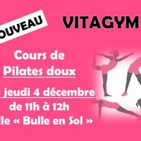 VITAGYM propose des cours de Pilates doux à partir du jeudi 4 décembre 2025 de 11h à 12h Salle Bulle en Sol Renseignements et inscriptions : 06 24 19 65 90